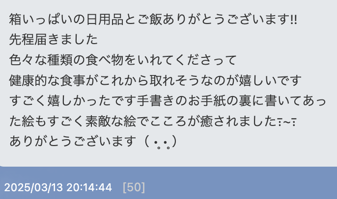 手紙を受け取った若者からは、こんなメッセージも届きました。