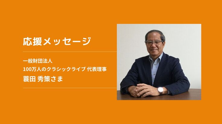 【応援メッセージ】一般財団法人100万人のクラシックライブ 代表理事 蓑田 秀策さま