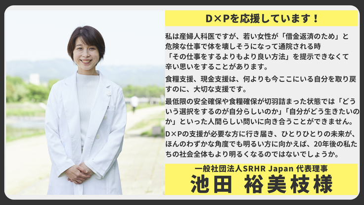 一般社団法人SRHR Japan 代表理事 池田 裕美枝様から応援メッセージが届きました。ありがとうございます!