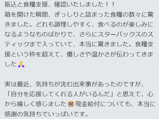 年末年始の追い詰められた状況の中で、少しでも安心を届けることができて本当に良かったです。