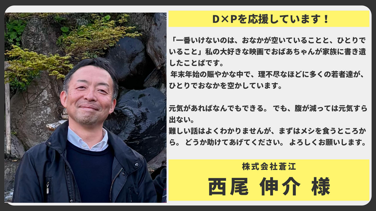 【応援メッセージ】 株式会社蒼江 西尾 伸介 様