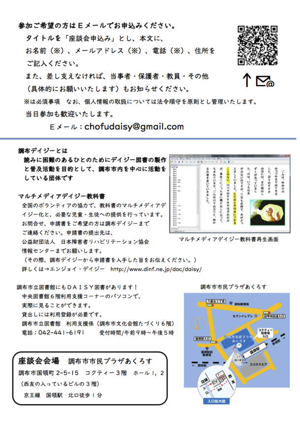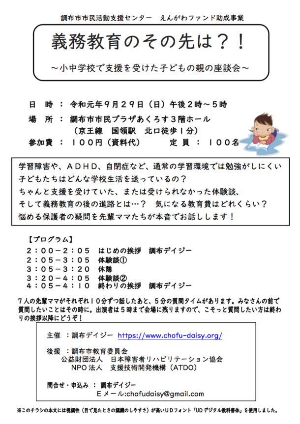 9月29日(日)に調布市内で調布デイジー主催のイベントがあります。