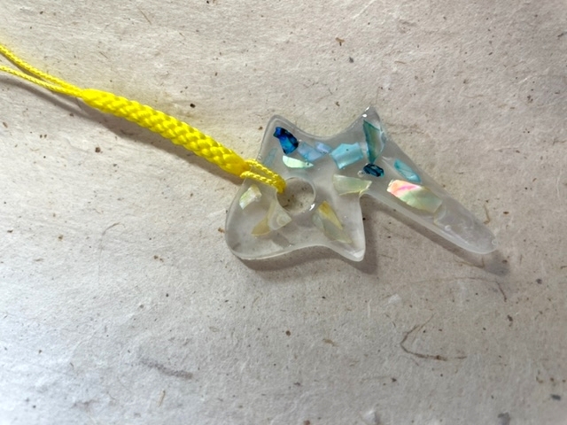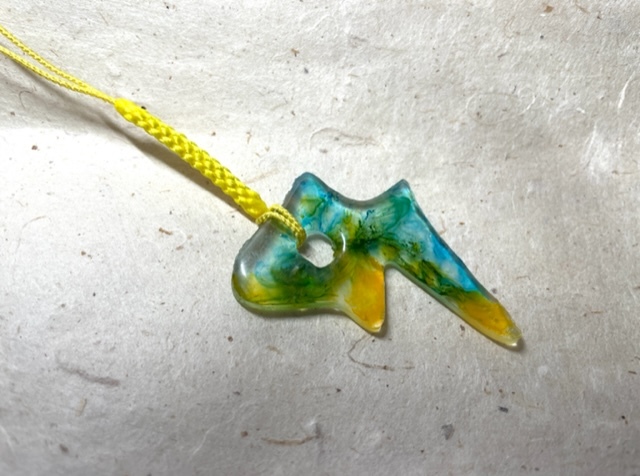 ウクライナカラーの螺鈿風レジン製鯛のタイストラップ