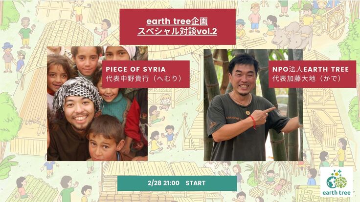 Piece of Syria代表の中野貴行さんがクラファン応援企画として、earth tree代表の加藤とお話しをします! ぜひご覧ください!