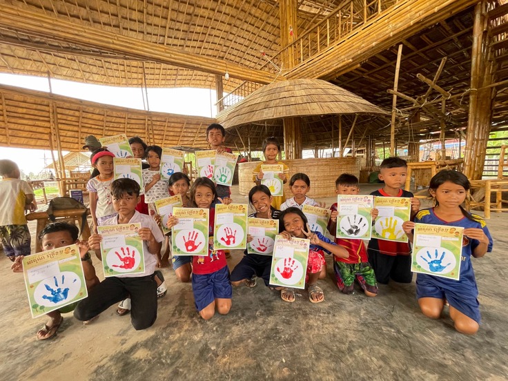 村の子どもたちにも協力してもらい、みんなでワイワイ手形を押していきました😄