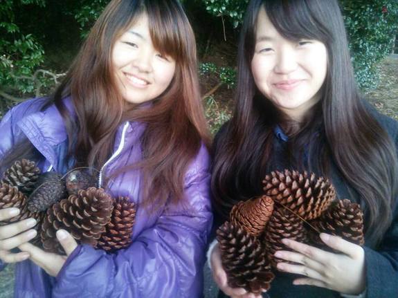 帰りに松ぼっくりを同じ宮崎大学1年のさやぴーと一緒に拾いに行きました!