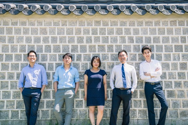 ソウル・景福宮にて。新たに加わった、三人の韓国人メンバーと共に。