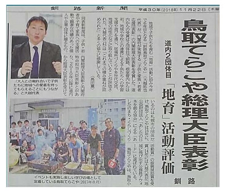 これらの活動が評価され、2018年には内閣府「子供と家族・若者応援団表彰」にて内閣総理大臣表彰を受賞しています。