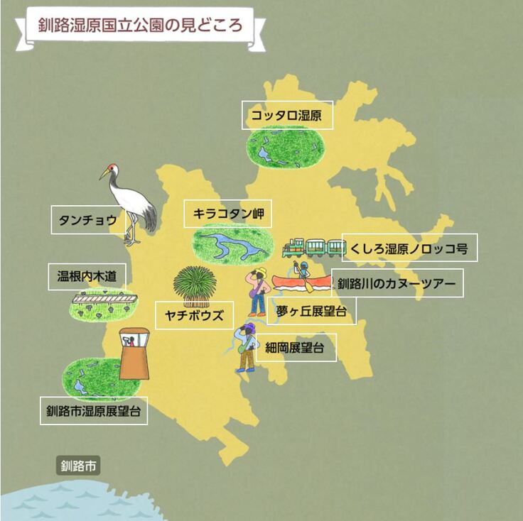 ①釧路湿原が持つ国立公園の魅力を発見してもらう。