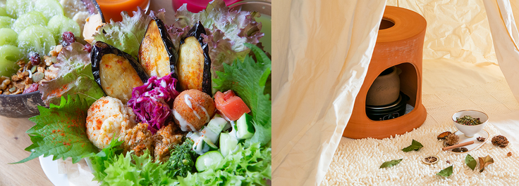 ▷(右)アーユルヴェーダカウセリングを軸にしたハーブよもぎ蒸し