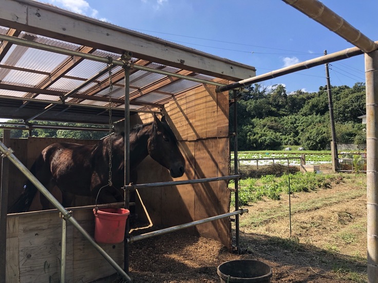同じく協力農家さんである食ヤボ農園さんには、パルプを使った堆肥の他にも、店頭の廃油を馬の蹄の手入れに利用して循環させています。