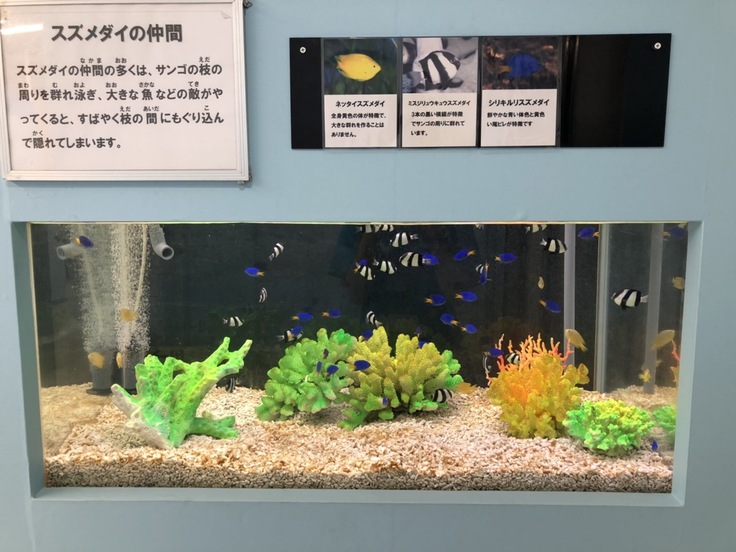その後は、スズメダイやヤッコなどの鮮やかな魚たちの水槽が並びます!!
