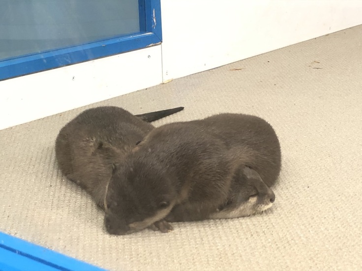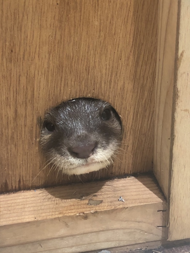 エサの時間になると、カワウソのお部屋にあるプールの水を排給水する穴に顔を突っ込んでまだかまだかと待ち構えている姿は、スタッフ特権の癒しです(笑)