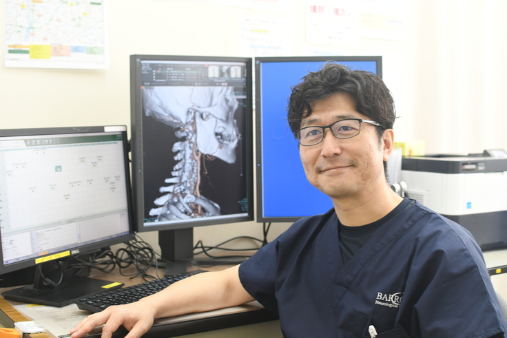 その中で、脳血管障害が年間700症例ほどあり、診療の中心となっています。脳血管障害の外科治療には、頭蓋骨を外して行う「開頭術」とカテーテルを挿入して行える低侵襲な「血管内治療」があります。その中でも血管解剖あるいは病変の部位や形状からどちらか一方ではなくそれぞれの治療技術を組み合わせた方がより安全性が高いと考えられる手術があります。