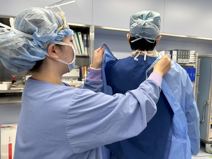 手術室では、医師、看護師、臨床工学技士など、さまざまな役割のスタッフが力を合わせて、日々、患者さんと向き合っています。