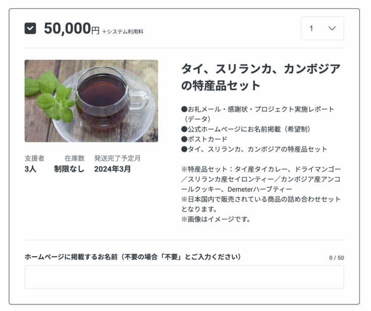 一人でも多くの方にご賛同いただきたく、様々なリターンをご用意しています。