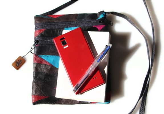 実は、これらの革製品は、EDAYAの主力製品である楽器のケースのデザインから派生してできた商品たちです。外国へ輸出する手袋を作る際に出てくる端切れを縫い合わせて作ったアップサイクルの製品で、私達は、工房の近くに住む、信頼できる職人さんにその制作をお願いしています。実はまだ、EDAYAの公式サイトにアクセサリーと楽器の制作過程は掲載していても、ケースの方はまだであったので、これが初公開となります!