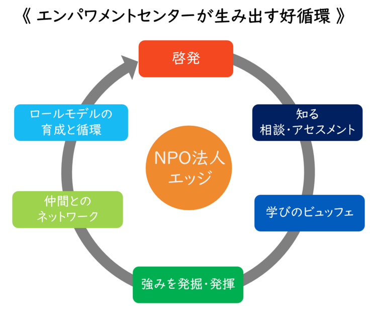 既存の事業・活動の拡大や、事業間のつながりの強化により、私たちエッジがエンパワメントセンターの役割を果たしたいと考えています。
