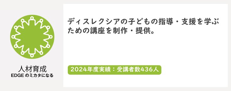 私たち認定NPO法人エッジは、ディスレクシアの正しい認識の普及と支援を目的に、25年間活動してきました。しかし今なお、幼い子どもを育てる保護者や教育関係者の間でも、ディスレクシアをまだまだ知らない人が多いのが現状です。