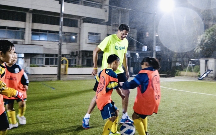 小学4年生から中学3年生までの約140名の子どもたちにエジミウソンをはじめ世界を知るトッププレイヤーたちが直接サッカーの指導をする教室を開催。
