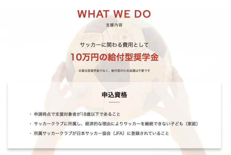 まだまだ国内にも経済的理由でサッカーを続けられない子どもたちが多く存在します。