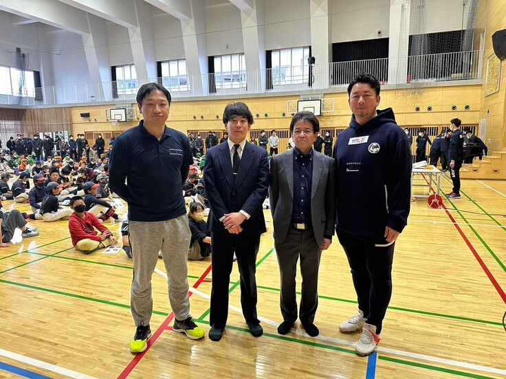 先日行われた江戸川区野球肘検診会場にも黄倉様(写真中央右)、中野様(写真中央左)にお越しいただきました。