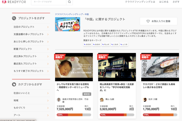 レディーフォー 全体を見てみたら、中国地方で2番目、全国でも8番目に支援額の多いプロジェクトになっていました!(驚)