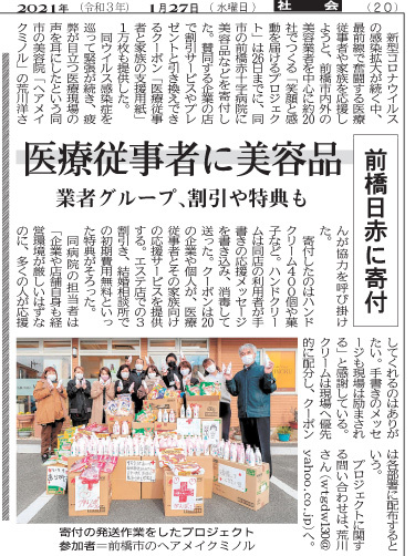 2020年12月より群馬県前橋赤十字病院を始め、多くの病院へご支援させて頂いております。