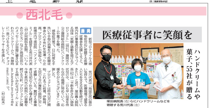 昨年の2020年12月より地域の民間企業の有志が『ハンドクリーム』資金を出し合ってきました。