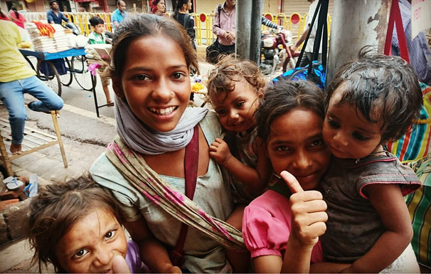 この写真はインドのバラナシの貧困でものごいをしてる子供達。この子供達にも洋服が届くように以前送りました。仲良くなるととても可愛いくて(^-^)/ 一緒にご飯を食べたりしました。きずいたら知らない子どもや大人まで紛れて全部おごってあげました(笑) インドは凄かった(笑)