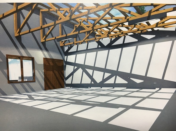 ちょうど、現地から、これから取り掛かる屋根構造の予定図面とともに、