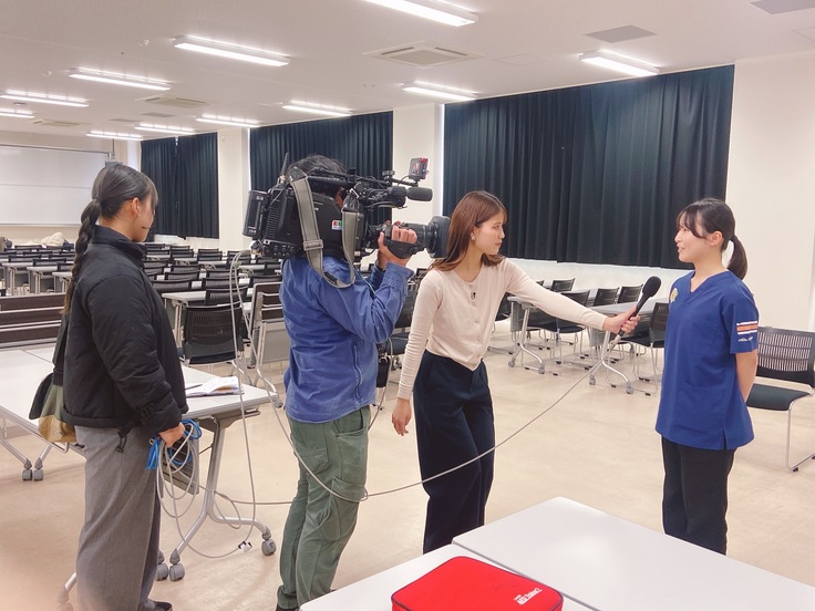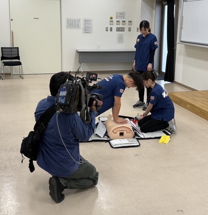 当日は、鈴木瑠梨アナウンサー に救急処置を体験していただき、メンバーへのインタビューも実施。
