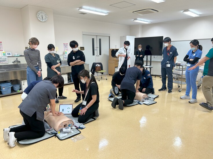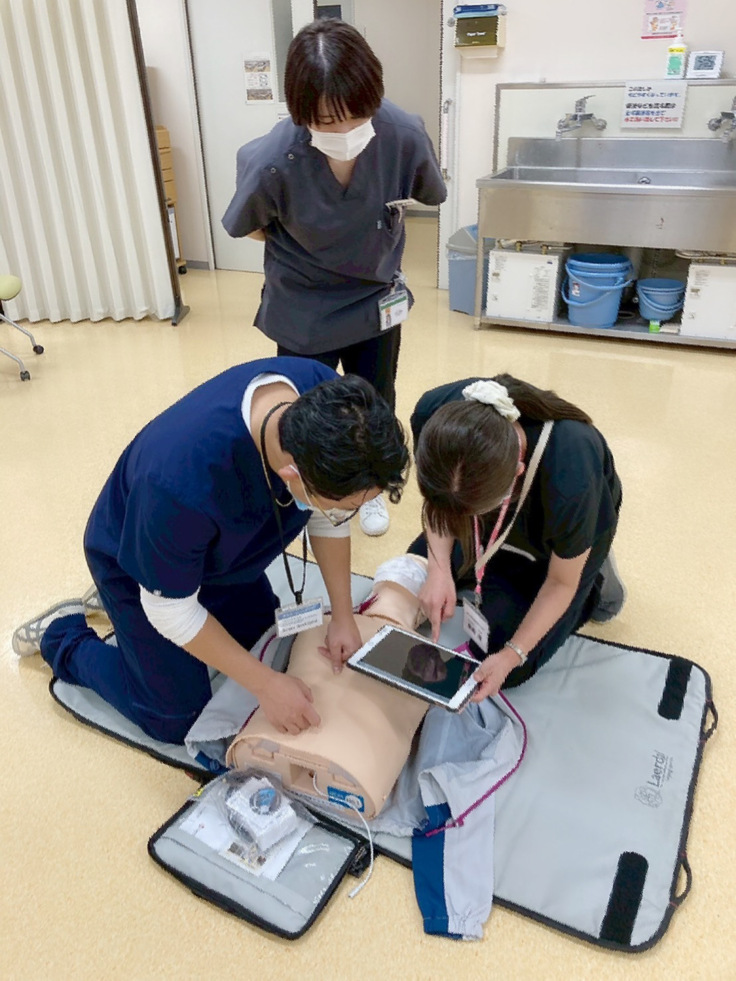 胸骨圧迫の深さやリズム、換気量などをリアルタイムで数値化し、実技の質を可視化。