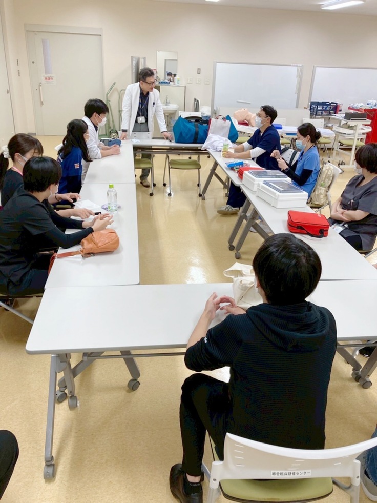 愛媛大学医学部附属病院 総合臨床研修センター長の熊木天児先生のご指導のもと、英語での医療コミュニケーションを交えた実習を行いました。