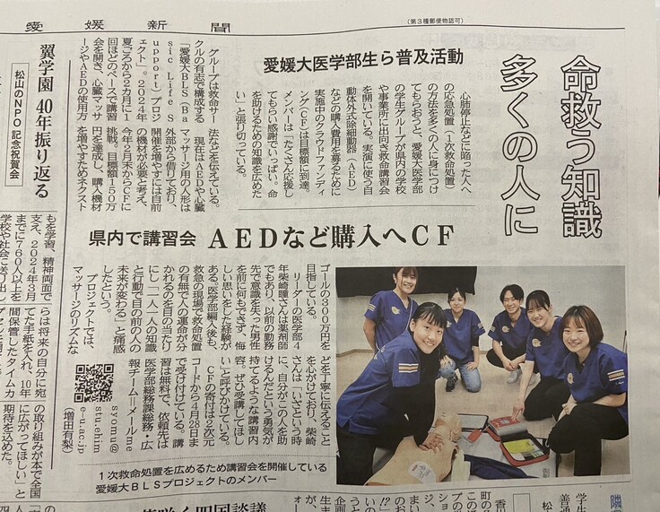 ●「愛媛大学BLSプロジェクト」オリジナルの救急処置マニュアルにお名前を記載(希望制)