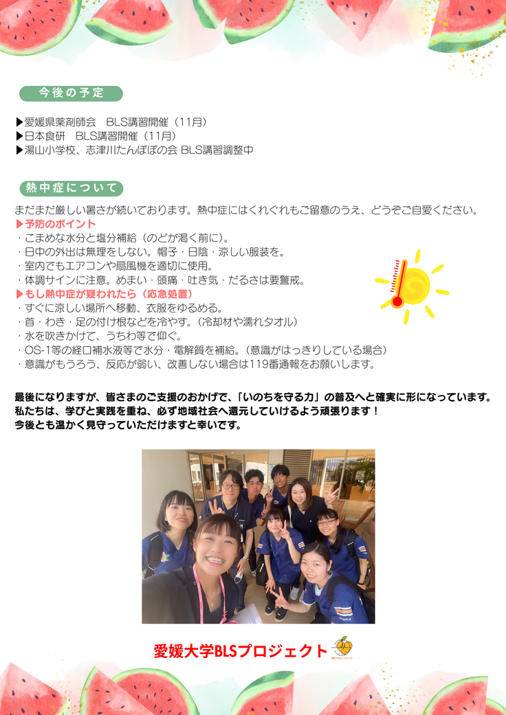 ●「愛媛大学BLSプロジェクト」オリジナルの救急処置マニュアルにお名前を記載(希望制)