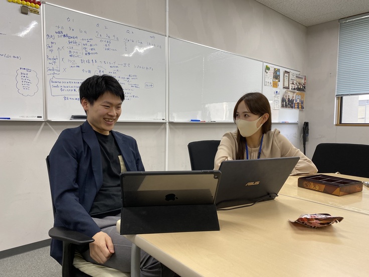 「お姉さんのような、保健室の先生のような存在が欲しい」と塾長らから要望があり、看護学科卒業・起業塾OG佐野さんに塾室へ来てもらいました!1枚目、後ろ姿が佐野さんです。