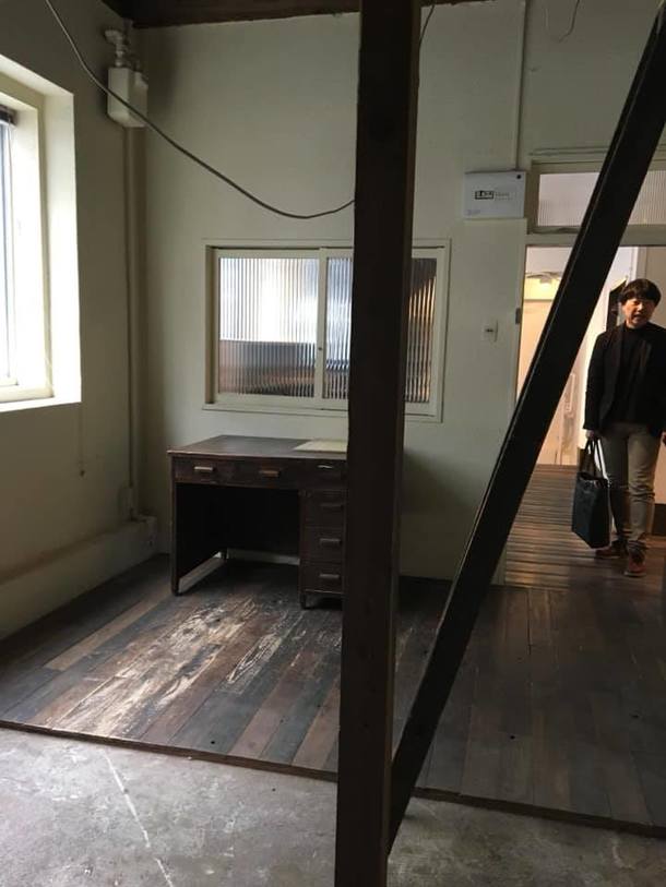 前に借りていた方(女性の靴職人さん)に残してもらった、「ロフト」と「ハシゴ」、「机」「ソファー」、「(靴の)棚」が置いてあるだけ!!