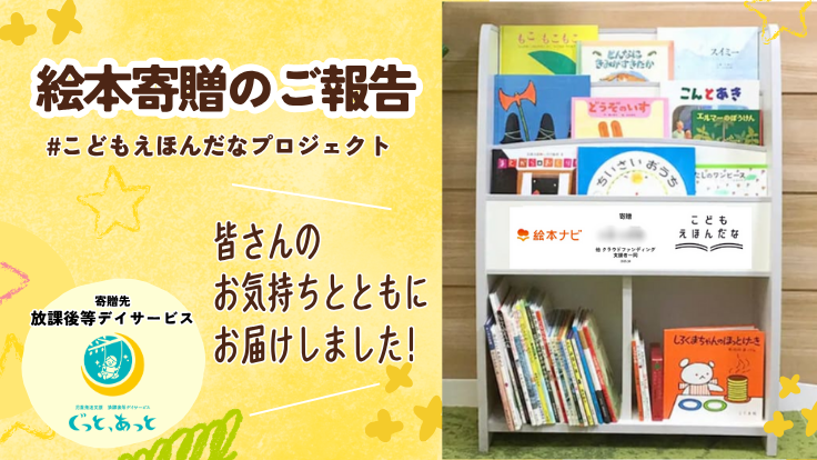 皆さま、このたびは、クラウドファンディング「子どもたちの発達支援に、本棚いっぱいの『絵本』をお届けしたい」へのご支援をいただき、誠にありがとうございました。