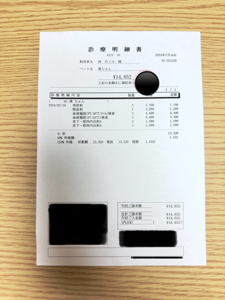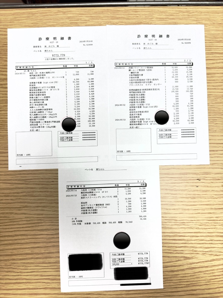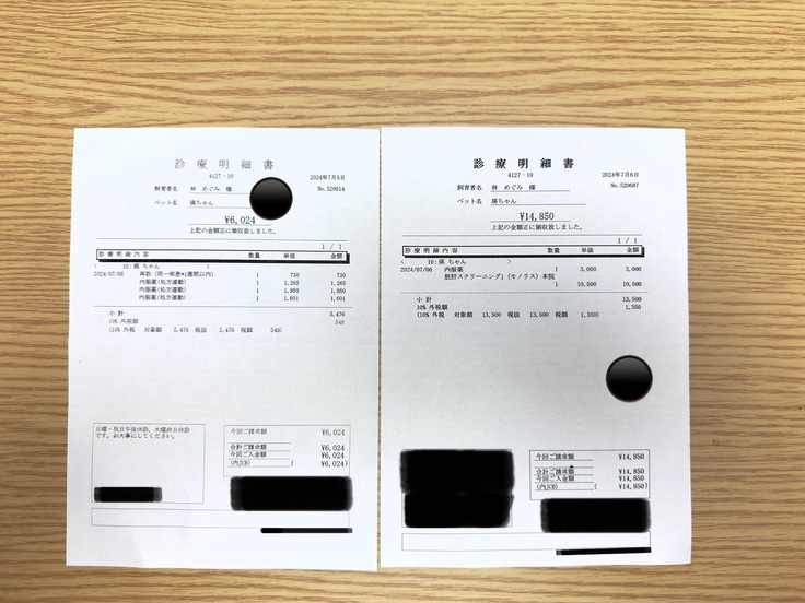 ▶︎ 4.掲載している資料についてページ上に掲載している診断書や診療明細書などの資料は全て動物病院から掲載の許諾を得ております。