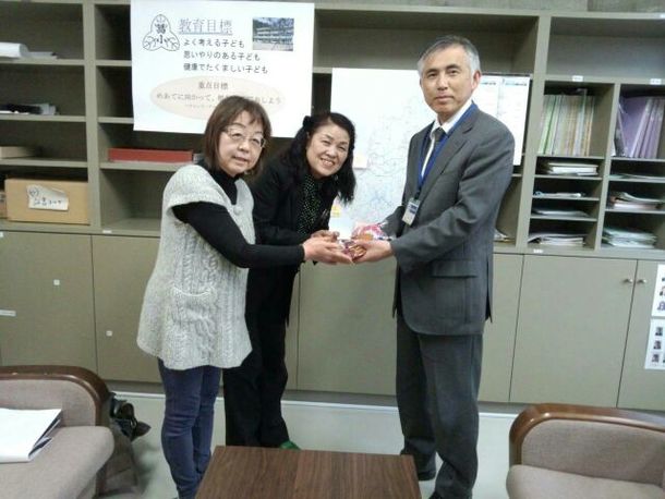 校長先生は、子ども達に皆様の深いおもいやりを伝えます。子ども達はこの三春町で避難生活をしながらも勉学に励んでおります。自分の命は自分で守る防災意識をますます高めていくように取り組んでまいりますと、皆様のお心をありがたく頂戴いたしますと喜んでいただきました。
