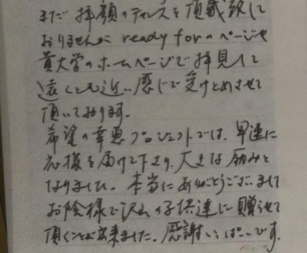 ご支援まことにありがとうございました。ご支援いただきました皆様にはリターンの送付けをもって御礼に変えさせていただきます。皆様からの志を生かすべく、今後は全国どこで発生するか分からない震災で大切な命を一人も失わないために、防災意識の向上を願って全国に「ぼうさい笑顔草根の運動」を推進してまいります。今後ともよろよろしくお願いします。