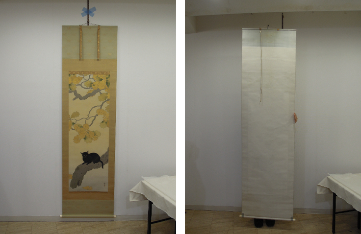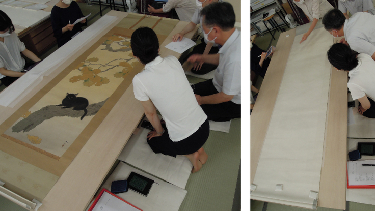 修理経過報告(4)菱田春草「黒き猫」の修理を開始しました