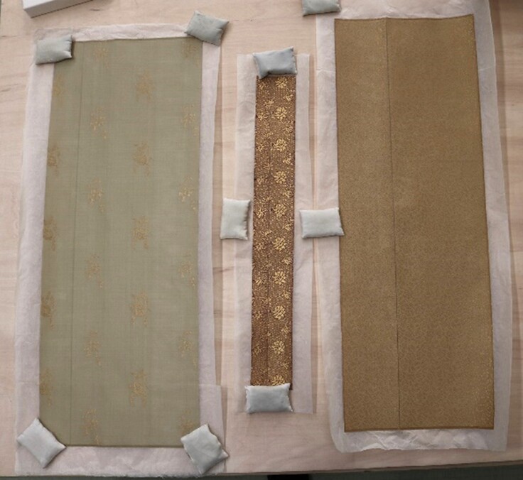 絵具の剥落止めを行ったうえで、掛軸を解体しました。