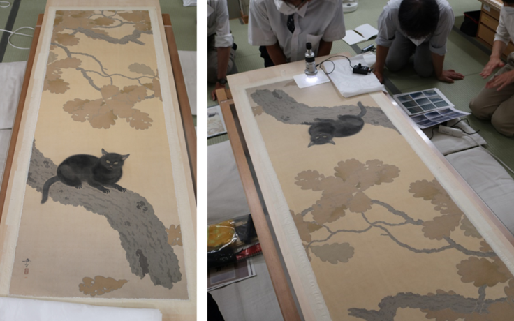 皆さまにご支援をいただいた菱田春草「黒き猫」(重要文化財)の修理が順調に進んでいます。