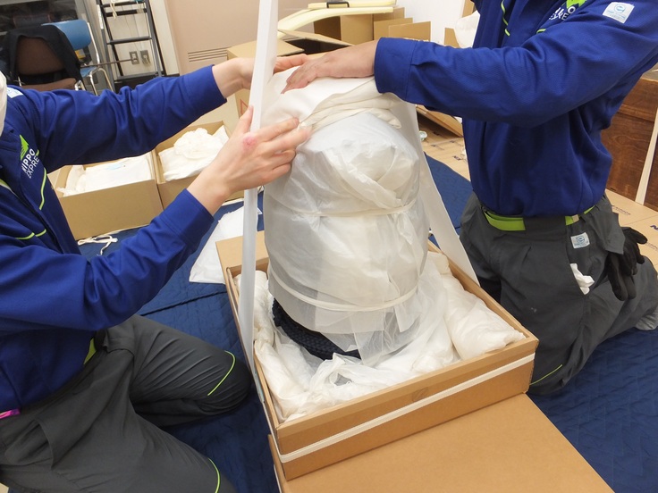 永青文庫での展示に向け、この2領について、先日、寄託先の熊本県立美術館で、輸送のための点検・梱包作業を行いました。