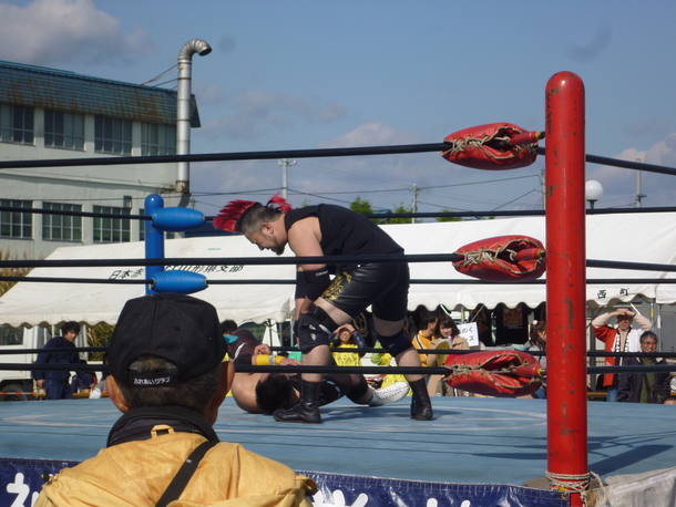 山形の羽前小松駅前でプロレス開催!~地元の"んめもん"と競演