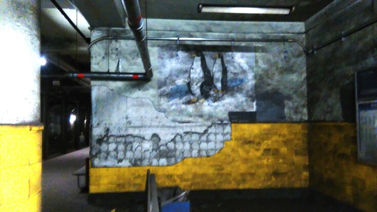 番組冒頭、鉄道オタクの芸人・ダーリンハニーの吉川正洋さんが案内する「鉄道ファンコース」の3番目(20分位から)。車窓から見える地下ホームの「ペンギンの絵」などが紹介されます。