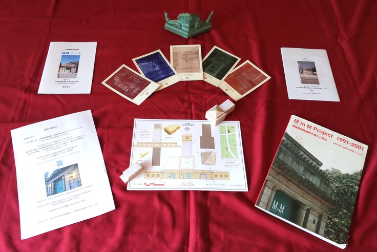 (銘板のベースは、第二次世界大戦中、1941年の金属回収令により外壁照明器具が接収され、この2024年に復元設置されるまでの80余年の間、外壁の穴を塞ぎ続け、この度役目を終えた金属板の写真です。)