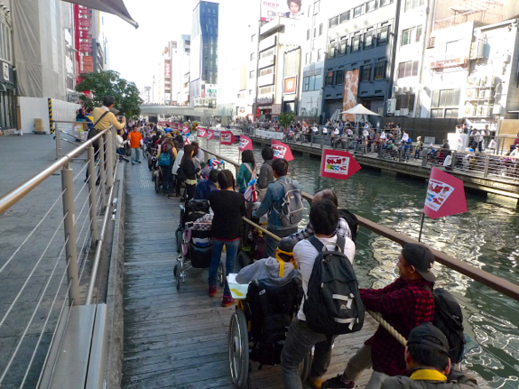 10月18日に大阪難波で、健常者も非健常者も一緒になって遊ぶ「なんばおにごっこ」というイベントがあり、「えきペディア」も難波のターミナルMAPを作成し、お手伝いさせていただきました。150台以上の車イスユーザーが一斉に街に出て、ボランティアのサポートの元、楽しい時間を過ごしておられました。